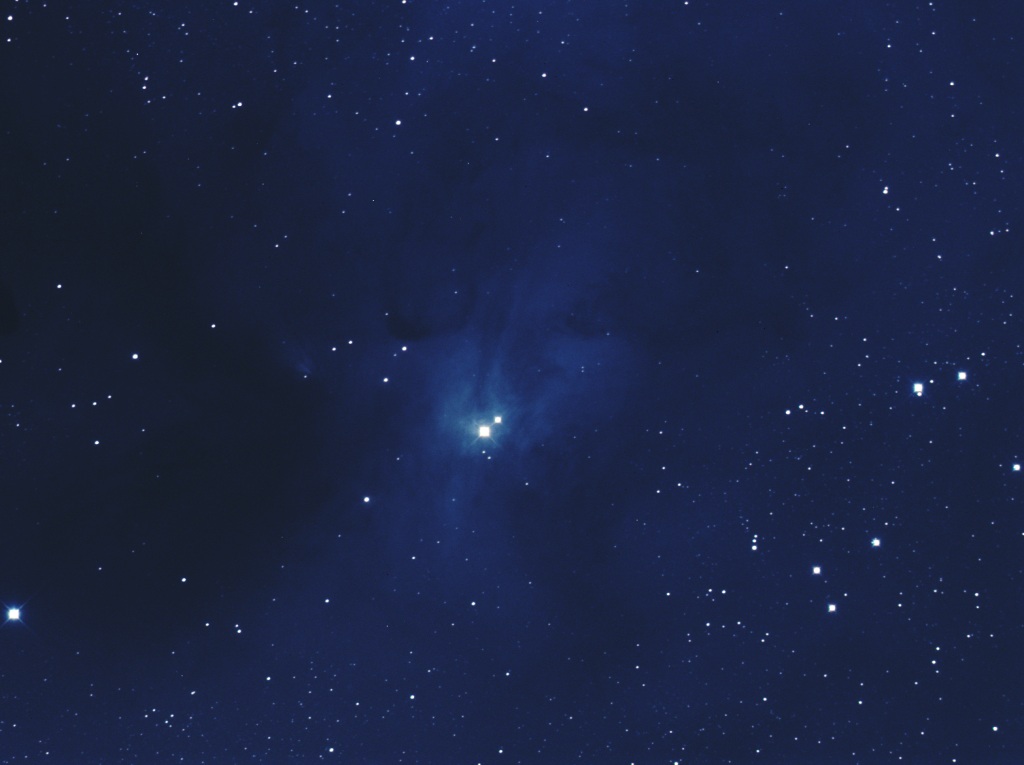 | An interesting reflection nebula complex located between Antares and Rho-Ophiuchi. This nebula is quite faint and low in the southern sky and needs more exposure time. See this image for a wide-field schmidt camera image of this area by Chris Schur. | |||