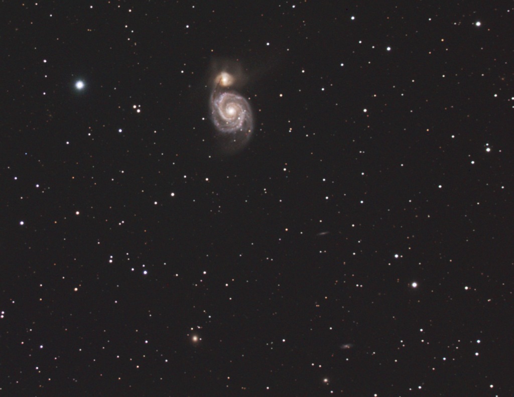 | M51 is composed of the two galaxies, NGC5194 and 5195. NGC5198, NGC5169, NGC5173, and IC4263 are also visible. | |||