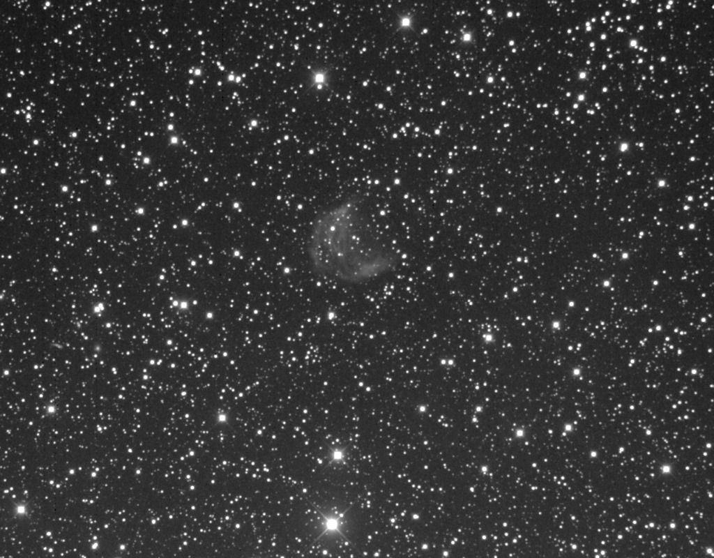 | Also known as Abell 21, this planetary nebula is faint and will need more exposure time. Two very small 15th magnitude galaxies can be seen near the left edge of the image. See this nice color image by Chris Schur. |