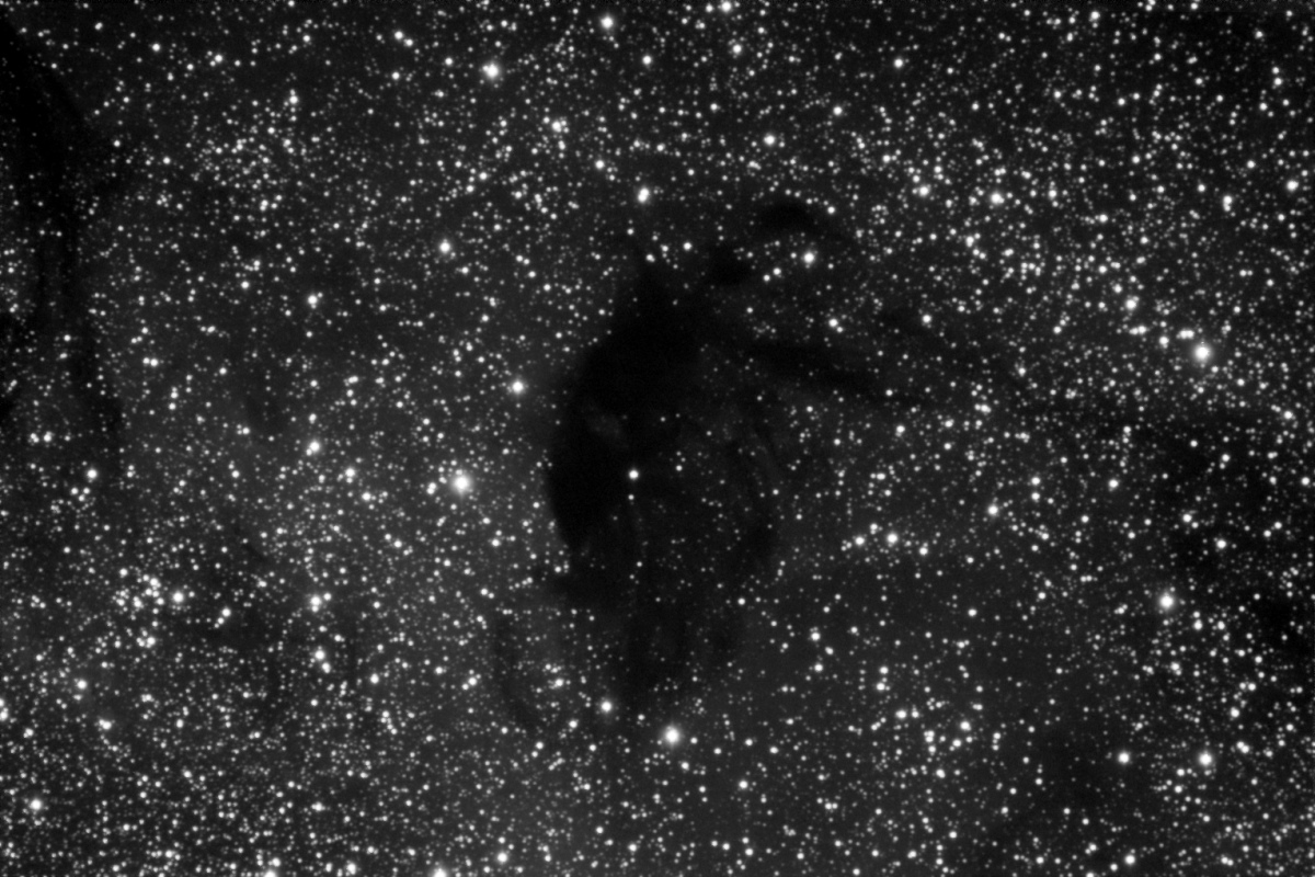 | The dark nebula B92 near M24 in Sagittarius. 90 minute red-filtered exposure. One of the first dark nebulae known, discovered in 1913 by E.E. Barnard. | |||