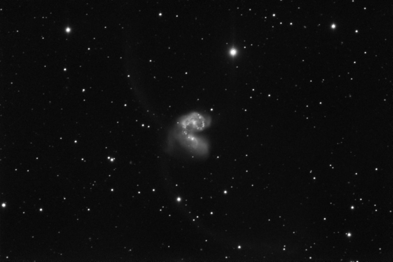 | The Antennae galaxies, ngc4038 and ngc4039 in Corvus. Also, SN 2007sr (discovered 2007/12/18) Total exposure of 40 minutes. 1800mm focal length. 5 minute exposures. | |||
